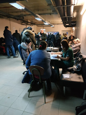 Ngày 10.2.2023. Báo động phòng không ở Kyiv. Các bác sỹ vẫn khám bệnh cho người dân tại hầm trú ẩn dưới tầng ngầm của bệnh viện.